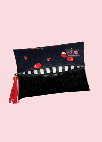 Makeup Junkie Bags - Cherry On Top Glitter Onyx Flat Lay [Pre-Order]